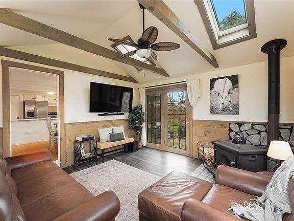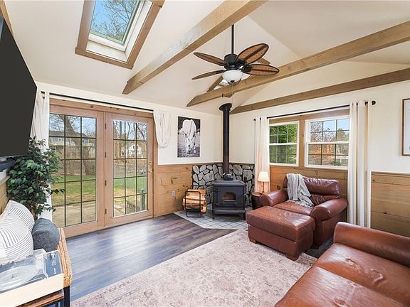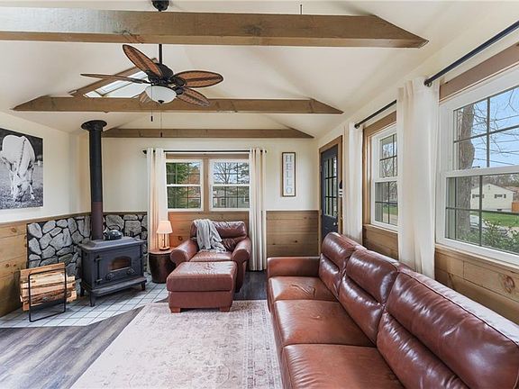 Welcome Home! This charming 3-bedrooms, 1-bath Ranch nestled in the peaceful Bernon neighborhood of Woonsocket. Offering over 1,250 sq. ft. of main-level living space plus an additional 260 sq. ft. with partially finished rooms in the lower level with plenty of extra storage. The exterior features brand-new vinyl siding and updated front doors, along with a newer roof, new heating systems, beautiful skylights, and hardwood floors in the living room. Whether you're a first-time homebuyer or looking to downsize, this lovely neighborhood is an ideal spot. Cozy up in the enclosed porch with a woodstove on chilly nights, and enjoy the expansive, fenced-in backyard—great for entertaining, gardening, or letting pets roam freely. Add your personal style inside and turn this house into your forever home. *Seller is relocating and looking to negotiate most of the furniture and items pictured above.