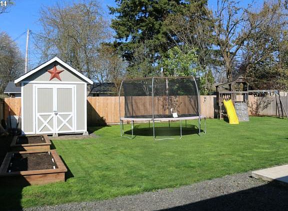 Beautifully remodeled and updated with huge immaculate landscaped yard. Blocks to schools. Open kitchen, maple cabinets, w/tile floors & newer appliances. Custom bath with tile shower & granite counters. Updated lighting and fixures, security system, front & rear for sound. Two new ductless heat pumps, vinyl windows, new hot water heater, fully fenced with 13x33 patio. Large yard, with sprinkler system, raised garden beds, patio, and 10x20 shed & RV Parking. This home is perfectly placed on the parade route for Creswell's annual 4th of July Parade, its also is the perfect location to watch the amazing fireworks display right from the back yard!