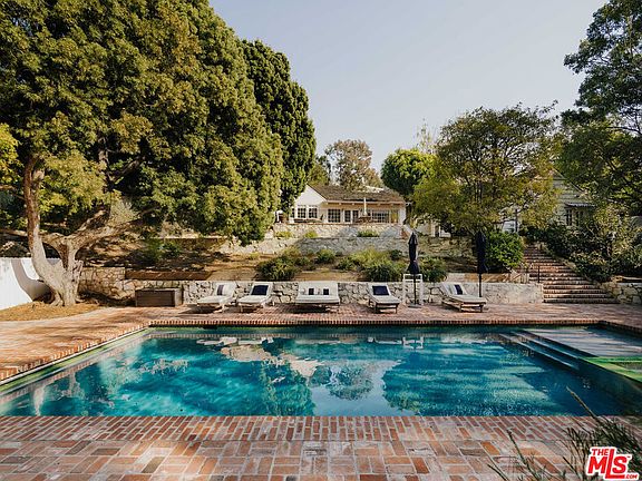 Experience timeless elegance reimagined in this 1938 Gerard Colcord estate, where Bel Air sophistication meets the rustic charm of a San Ysidro Ranch-inspired retreat. Thoughtfully updated to balance historic character with contemporary comforts, the property features a four-bedroom, three-and-a-half-bath main house and a detached one-bedroom guest house with its own living and dining areas, full kitchen, and picturesque views of the expansive grounds and newly rebuilt pool. The light-filled kitchen is a showpiece, blending Calacatta marble and soapstone countertops with premium stainless steel appliances and a butler's pantry equipped with beverage and wine refrigerators. A charming Dutch door invites natural light and adds a warm, welcoming touch. The kitchen flows seamlessly into a casual dining space with a hidden speakeasy bar and a cozy seating area by the oversized fireplace, while the adjacent sunken den opens directly to a brand-new outdoor entertaining patio.The living room radiates charm with its original fireplace, and the dining room boasts handcrafted details, including original cabinetry and vintage tilework. The primary suite serves as a tranquil retreat, featuring dual custom closets, a spa-inspired bath with a freestanding tub and steam shower, and direct access to an outdoor wellness area complete with an outdoor shower, cold plunge, and barrel sauna.Beyond the main residence, the property offers a home gym with infrared heating, an art studio, a vegetable garden, and meticulously maintained grounds with mature landscaping. Gated and secure for ultimate privacy, this estate blends history, luxury, and modern convenience into a true Bel Air treasure.