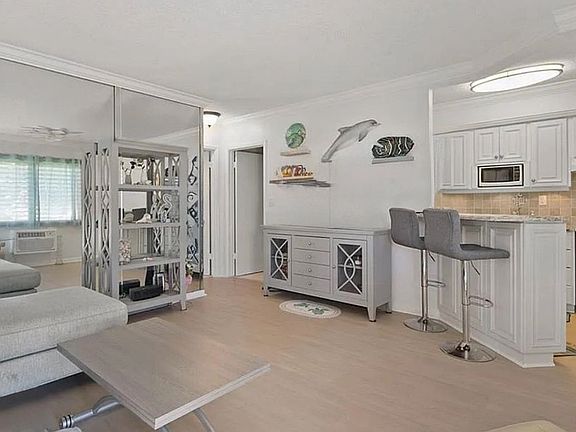 Beautiful coastal decorBrightly lighted headboardLighted ceiling fanAdjustable bar stoolsLvp flooringAir conditioners