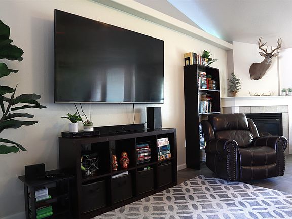 Welcome Home! This home is in a desirable subdivision near Legacy Park, just 40 minutes from Boise. This home features 4 bedrooms, 2 bathrooms, and a 3-car garage with built-in shelving and work bench. Open concept with vaulted ceilings in the main living area allowing the perfect amount of natural light to flow throughout. Including arch entry way with top shelfing, gas fireplace, easy to maintain LVP flooring. The kitchen features a breakfast bar for extra seating, pantry, and a built-in desk, with an adjacent dining room. The large main suite has a spacious accessible closet, dual sinks, water closet, jetted tub, and a connecting room perfect for an office or craft room. Outside, relax on the covered patio with two ceiling fans, two pull down sunshades, natural gas line plumbed for BBQ entertaining. A fenced backyard provides mature landscaping, garden bed, 6x8 shed, front side yard has potential for RV parking. Call for a private showing today!