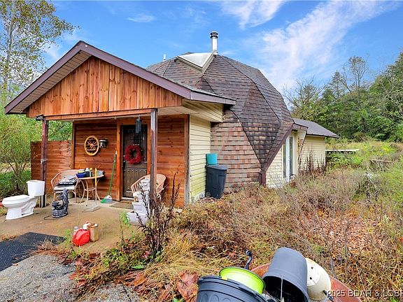 Treasure Hunt Begins! Unique Fixer-Upper Opportunity on 4 Acres! Looking for your next great project? This property is full of possibilities — a True Treasure Hunt waiting to be explored! 4 acres — partially cleared with gentle to moderate terrain. NO HOA restrictions! Live Creek flowing through the property. Geodome home featuring 4 bedrooms & 2 baths, Detached 4-car garage. Everything sold as is!Extras galore included with the property:1974 Prevo Bus, 2001 Ford Pickup, Four flatbed trailers, Stacks of stone blocks, 2 Sheds with treasures, chicken coop, lumber, washer/dryer combo, refrigerator, range, furniture, gazebo, washer, dryer, mowers, & 4 car garage has industrail metal shelving, & more!! Remodel already started — some building materials included to help you continue the vision. This is truly a one-of-a-kind property for flippers, investors, or creative dreamers ready to uncover hidden treasures. Sold as-is, where-is. Don’t miss your chance — come check it out and see the potential for yourself! Great location just minutes from Osage Beach!