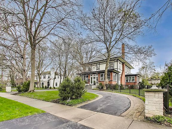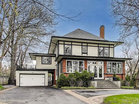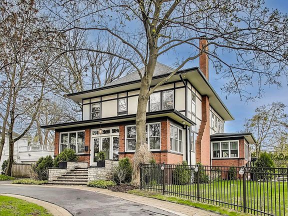 Breathtaking Tudor home in East Glencoe! Sprawling bluestone steps lead you into a timeless four season French inspired entry porch. The effortless flow is an entertainer's dream, blending traditional Chicago architecture and contemporary design with a spacious living room boasting 10' ceilings and an oversized roaring fireplace. A banquet style and sized dining room features vintage built in buffet and 11' dining table, elegantly coffered ceiling and French doors opening to a bright heated sunroom with entry to the back patio. A show-stopping all-white chefs kitchen features quartz counter tops, thoughtfully designed and custom-built cabinetry with a 3-seater island, Wolf and SubZero appliances and radiant heat porcelain floor. A grand staircase carries you to a cozy mid-level den with balcony access above the garage. Top floor master suite with a custom-built walk-in closet, spacious step in shower, whirlpool tub, new stacked washer/dryer, double sinks and plenty of built in storage with radiant heat floor and towel rail. The second floor also includes three additional bedrooms and two updated full baths. Full footprint finished basement with updated full bath, steam shower and basement laundry room. Stepping outside you'll find a beautifully maintained perennial garden with magnificent privacy evergreens, entertainment patio with Sunbrite TV, outdoor speakers and in ground subwoofer. A fully fenced yard, attached garage with breezeway and large semi-circle driveway with additional parking pad. Just 2 blocks to famous Glencoe beach, Metra train and downtown Glencoe. Brand new roof. New HVAC.