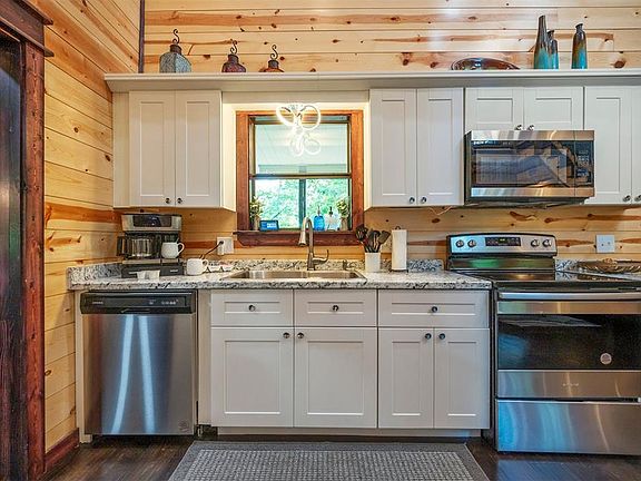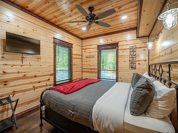Feeling Froggy is a well established short term rental cabin! Tucked among mature trees and overlooking a peaceful pond with lily pads, this stunning four-bedroom, two-bathroom cabin offers the perfect combination of modern comfort and natural charm. The thoughtfully designed floor plan includes two spacious bedrooms each with a king-size bed, a third bedroom with two queen beds, and a game room with bunk beds—providing comfortable accommodations for large families or groups. Both bathrooms feature stylish walk-in tile showers with a spa-like feel. Inside, the dedicated game room delivers entertainment for all ages with a vintage arcade machine, foosball, and a versatile table for cards and board games. Outdoors, the cabin invites relaxation with an expansive deck, private hot tub, ample seating, a propane grill for al fresco dining, and a fire pit for enjoying evenings under the stars. Whether as a vacation retreat, investment rental, or full-time residence, this property offers a rare opportunity to own a modern cabin in a serene and picturesque setting. Call today for a showing!