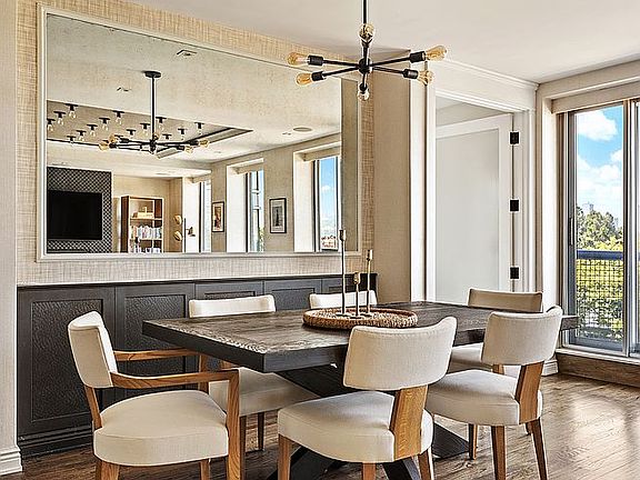 The home is equipped with city-quiet windows and motorized shades, complete with blackout shades in both bedrooms. This split bedroom layout ensures privacy. There is ample closet space and custom built-ins for extra storage. There is also an oversized modern washer/dryer.