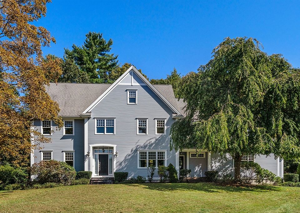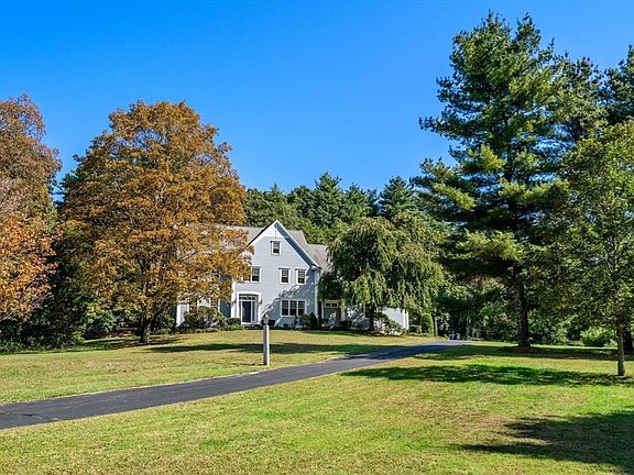 Presenting the PERFECT HOME: elegant yet comfortable, spacious yet intimate, private yet close to sidewalk to town & favorite Sherborn neighborhoods, this MOVE-IN ready home, sited on 2+ wooded acres, down a long driveway well off the road has everything today's buyers are looking for: high ceilings, open floor plan, hardwood floors, oversized windows, central AC, front & back staircases, home office, mud rm, laundry rm & 3 car garage; the large eat-in kitchen w/center island & access to deck opens to beautiful great room w/cathedral ceilings, wet bar & fireplace. The attached sunroom overlooks a gorgeous backyard w/stonewalls, patio, built-in fire pit & mature specimen plantings. The well designed 2nd floor includes a large, private primary suite, an ensuite BR, 2 add'tl BRs w/jack & jill bath, plus large bonus room to meet many needs. Sherborn, a bucolic small town just 18 miles west of Boston offers exceptional public schools, plentiful hiking trails & town beach. COME SEE!