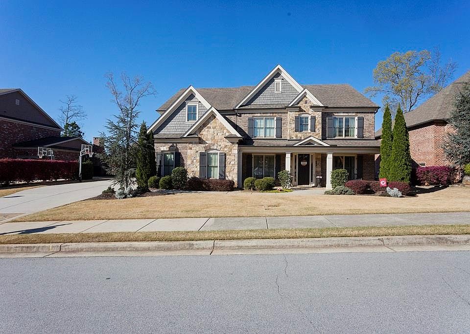 Great Opportunity to own a beautiful home in Stonecrest Subdivision inside Buford City School district! Open Concept floor plan features spacious family room with coffered ceiling, formal dining room, study and guest bedroom suite on main floor. Custom kitchen with large island, granite tops, tile backsplash, custom cabinets and stainless steel appliances. Upstairs has generous sized master suite with his/hers closets. Upstairs also contains 3 secondary bedrooms served by two additional full bathrooms, laundry room and media room. Lot sits on large level lot, with flat backyard, mature screening trees and cozy covered porch with fireplace. Exterior of house recently professionally painted and main floor hardwoods are new.