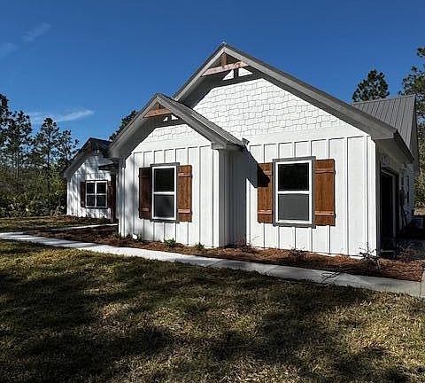 Beautiful 4 BR/2 BA new construction in the desirable Dreamfields Plantation. The house is settled on 7.2 acres and secluded from the roadway. The home features a tile master shower and garden tub as well as the guest bath. The open floor plan features a large kitchen with quartz countertops and upgraded cabinets. The flooring is floating LVP. Enjoy the evenings on a large covered rear porch.