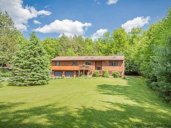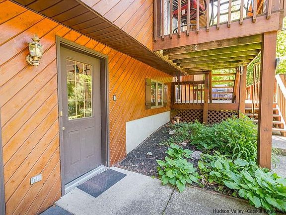 Ready to be your refuge from the moment you close! This neat-as-a-pin retreat is tucked back nicely on 2.7 acres from a winding country road, but despite the privacy and seclusion, the location is only 10 minutes by car from Uptown Kingston, the NYS Thruway (Exit 19), and, in the opposite direction, the Village of Saugerties. (And it's just 15 minutes from Woodstock and Rhinebeck.) Meticulously maintained, inside and out, the house features a great layout of living space mostly on one floor, flanked by a large deck and swimming pool on one end, and two additional levels of decking on the other, overlooking a wonderfully landscaped yard of spruce and other mature trees. Like the living and dining rooms, the spacious master bedroom suite features cathedral ceilings and skylights, and also includes an enormous luxury bathroom and generous walk-in closets. The finished ground level includes an office, den and separate exercise room, adjoining an oversized 2-car garage. Outside is a 12x22 shed for even more storage. And all of it, from the cedar siding to the 4-zoned heating system, is remarkably clean and well maintained. This is a great opportunity for country living that's rural in feel but also low-fuss and convenient to all the action in nearby towns.
