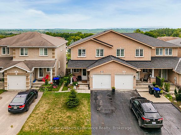 Welcome to this well cared for end-unit townhome in a quiet, family friendly neighbourhood. Offering 3 bedrooms and 1.5 baths, the spacious primary bedroom boasts a walk-in closet and semi-ensuite. The bright main floor includes an open dining area with a walkout to the back deck and gazebo, overlooking the beautifully landscaped gardens and a view of the neighbourhood park just around the corner. The partially finished basement provides extra living space, a rough-in for a 3rd bathroom, and a walkout to the large ground-level deck and backyard, complete with an oversized shed. Recent updates include a newer roof (2 years old). Ideally located just steps to the park, and close to Georgian Bay, schools, shopping, and all amenities.