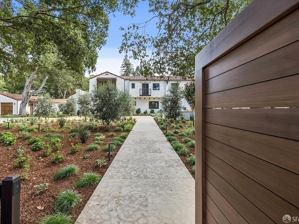 Discreetly positioned on a beautiful corner lot sits a home that beautifully links old-Atherton with modern day aesthetics, technology and livability. Built in 1928, this nearly 5600 square foot home (with detached guest house and garage) was recently remodeled and offers a new kitchen-great room, home study, formal dining room, living room, three en suite bedrooms (all on the same level) and a fourth en suite bedroom on the main level, workout room and home theater. The curated landscaping includes a welcoming row of olive trees, majestic pine and oak trees, paths with crushed stone that guide you to a contemplative stroll through the property and a field of gorgeous green grass in front of the new, lush swimming pool. A chic guesthouse is complete with spacious bedroom and living-dining-kitchen space that opens through elegant French doors to the fire pit and pool. A detached garage with side-by-side parking generously accommodates two cars (and storage) with loads of room in front of the garage. The quiet elegance of the property belies the uniqueness of the location - in the heart of Atherton, just steps from the best of Peninsula living.