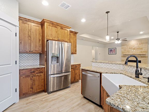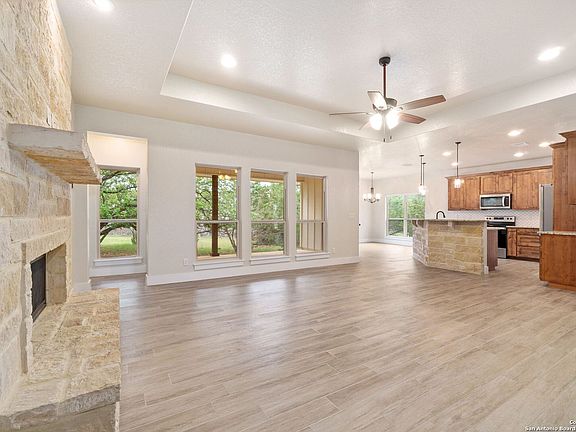Welcome to refined living in this exquisitely crafted custom home, built in 2020 with impeccable attention to detail and high-end finishes throughout. This stunning 3 bedroom, 2 bathroom residence offers a sophisticated blend of style and comfort, featuring a desirable split floor plan and premium upgrades at every turn. Step into the chef-inspired kitchen adorned with sleek stainless steel appliances, custom cabinetry, and elegant granite countertops - perfectly designed for entertaining or everyday luxury. The expansive open-concept living space is anchored by a striking fireplace, with beautiful tile flooring flowing seamlessly throughout the home. The primary suite is a private sanctuary, boasting a massive walk-in closet and a spa-like en-suite bath that exudes serenity and sophistication. Two additional bedrooms provide spacious accommodations for family or guests, each with access to a tastefully appointed second bath. Step outside to your own private backyard oasis, fully fenced and featuring a custom firepit - ideal for cozy evenings under the stars. A 2-car garage offers ample space for vehicles and storage. From top to bottom, this home defines modern luxury with timeless appeal. Don't miss the opportunity to experience elevated living in a truly exceptional property.