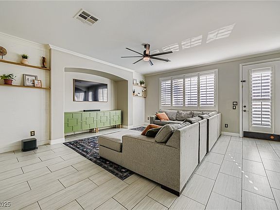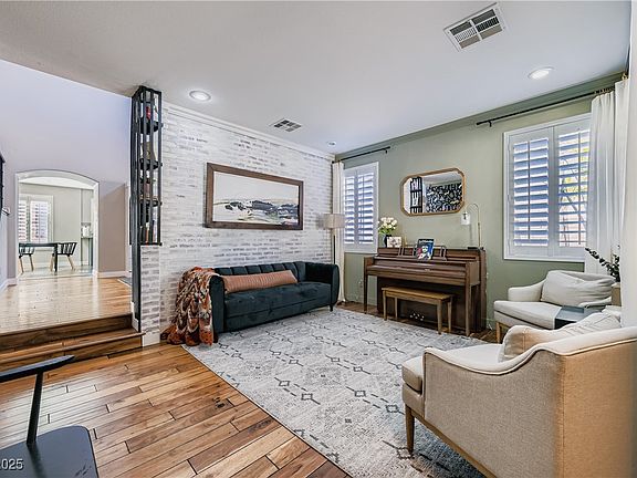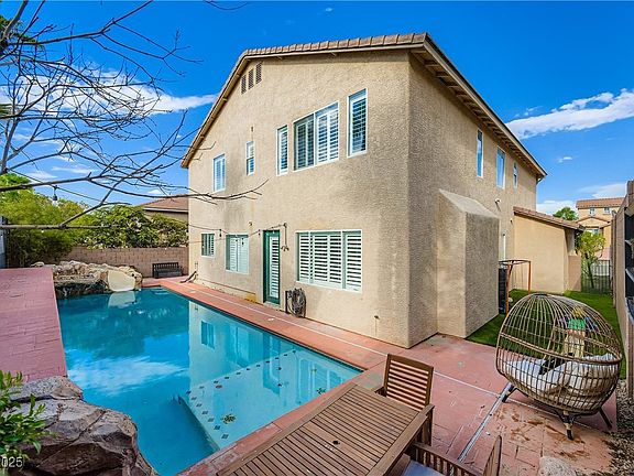 Welcome to your dream home in Henderson! This stunning gated residence offers 5 spacious bedrooms plus a versatile loft, perfect for entertaining or relaxing.Relax & unwind on the spacious front porch, perfect for morning coffee. The backyard is an entertainer’s paradise, featuring a sparkling pool with a water slide for endless fun.The expansive primary suite includes a private sitting room with a cozy fireplace to create a true retreat. Custom built-in bookcases in formal dining room. 1 bedroom and bath are conveniently located downstairs, ideal for guests or multigenerational living.Open & inviting floor plan with abundant natural light. Loft space for media, gym, playroom, or home office. Custom modern finishes throughout and it shows how much this love was put into making this home. Custom shutters throughout offer both sophistication & function, enhancing every room.Comfort, style, and functionality, offering the perfect setting for both everyday living and memorable gatherings.