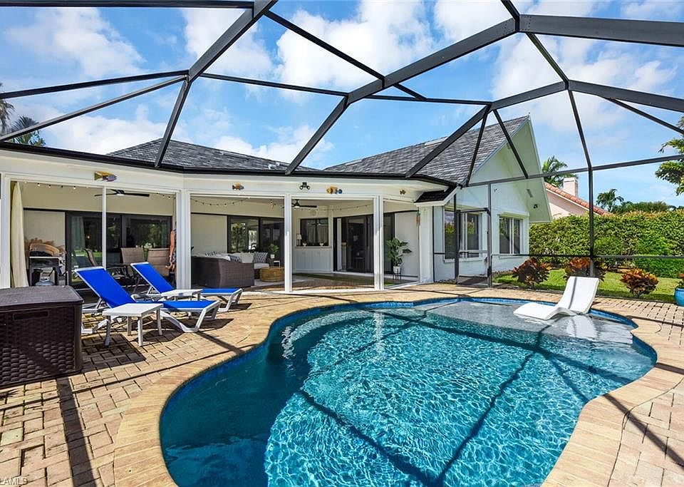 Discounted rate of $5000 for December 2025! Torrey Pines is a spacious, newly renovated single family home in Lely Country Club. A heated pool with sun shelf overlooks the Royal Palm Country Club golf course and the screened lanai keeps the bugs out as you enjoy indoor-outdoor living in your covered patio area. Inside, the home has been stylishly renovated in a farmhouse-chic style with wood plank tile flooring throughout, designer bathrooms with glass enclosed showers and an open concept kitchen and family room that flow out to the lanai. All bedrooms and the family room have mounted HDTVs with full cable service and the home is furnished with high speed WiFi, a full suite of quality white linens and toweling, and a fully equipped kitchen. If you are seeking a luxurious, executive-style single family home rental in Naples, you have found the dream at Torrey Pines! Please inquire on availability for pets - dogs will be considered and pet fees will apply.