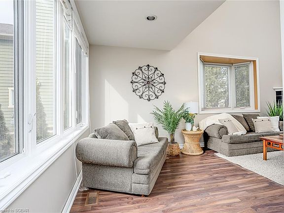 Bright & Spacious Contemporary end Townhouse w/vaulted ceiling in the heart of this 4 Season destination. Great location, quietly tucked away behind Georgian Bay Resort Hotel yet only mins to the action of Collingwood & Blue Mountain. This 2 Bed + office/den/additional bed loft space home, combines an easy flowing main flr living area comprising Kitchen/Dining/Living w/private back patio area to enjoy warm Summer evenings. Oversized windows allow natural light to flow into the main living space & there's a cozy corner gas fireplace for those chilly Winter evenings. 2 PC powder rm on main floor. Spacious Master Bed w/4PC en-suite. Generously proportioned 2nd Bedroom w/additional 3 PC Bath. An abundance of fresh air & outdoor activities await. Easy access to hiking/biking trails. Choice of golf courses to enjoy. Sail/paddleboard on the Lake. Ski/snowshoe/cross-country minutes away. Numerous restaurants to enjoy at Blue Mountain Village or downtown Collingwood with boutique shopping.