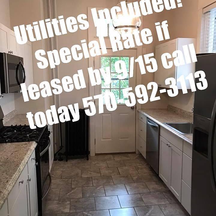 Utilities included! Just Renovated.,,..Bright and Spacious with Tall ceilings and new everything, nice big balcony deck overlooks the mountain.. Close to Wilkes and Kings and downtown A few miles from LCCC. Near River common. Quiet neighborhood. Utilities included in the rent. Sorry no large pets. We are good landlords who take care of their properties. Check us out on facebook znproperties or ww.znproperties.com Security of one month's rent and first month due at move in. Lease until 5/30/19 and opt to renew lease then.