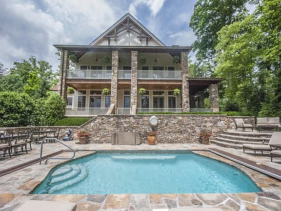 Nestled in our White Sulphur Hill neighborhood, this extraordinary home is situated just above the hotel's North Lawn, offering both privacy and proximity to The Greenbrier resort as well as gorgeous mountain and wooded views. Beautiful stone and timber accents are found throughout the home, including reclaimed oak floors, unique stone columns, custom timber beams, and a stone fireplace. The home also has a stunning gourmet kitchen, granite countertops, custom built-ins, several beautiful chandeliers and a spacious master suite with a whirlpool tub, tiled shower and floors.