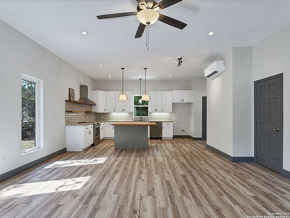 **$5,000 seller incentive to buyer** Stunning new build with open floor plan, spacious ceilings, gorgeous kitchen with granite countertops and butcher block island. Beautiful tile backsplash and white soft close cabinets, gold pulls and finishes. Wood laminate flooring for easy clean up. Energy efficient mini split downstairs with conventional ac upstairs. Sizeable bedrooms with walk in closets. Primary bath has walk in shower with floor to ceiling tile and glass wall. Double vanity and large walk-in closet. Imagine walking out to your upstairs balcony to enjoy a cup of coffee or glass of wine while enjoying some of the most beautiful sunrises and sunsets with nothing but treetops for miles. Back yard is a serene vision with wrap around porch that backs up to greenbelt. The perfect place to relax and enjoy wildlife. Schedule a tour today!!! *$5000 seller incentive to buyer to use at closing.