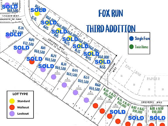 Welcome to Fox Run 3rd Addition set into a beautiful and tranquil community of New Richmond! This listing is selling lot 9 (.275 acre) and lot 10 (.258 acre) together for a twinhome build (both are walkout lots). Together the two lots cost $90k. Please inquire if you are interested in a single unit for yourself, and a builder can be located for you. Both Single Family and Twinhome options available! Builders may purchase multiple lots.