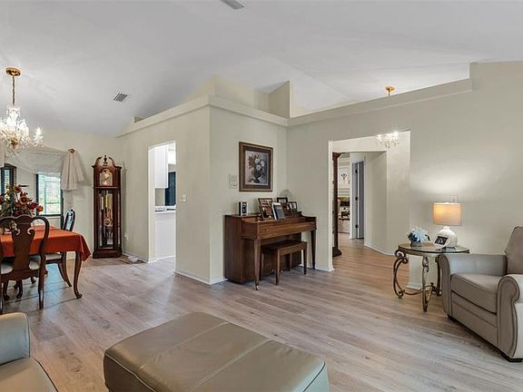 Meticulously maintained 4 bedroom/ 3 bath/3 car garage screen enclosed pool home. Home features formal living, dining and family rooms. Split bedroom plan, over 3400 sq feet living. Kitchen was remodeled in 2024 with new shaker style cabinets, quartz countertops and stainless steel appliances. Large master bedroom with tastefully remodeled(2024) master bathroom featuring dual sinks, large walk in shower, dual closets. 2nd bedroom could serve as an additional master bedroom as it has an on suite bathroom and a 11x10 sitting room. New architectural shingle roof installed Dec 2024. Home has a whole home 22 kw Generac generator with a 500 gallon propane tank. Home has been completely replumbed. Home also has an irrigation well for keeping the oversized .41 acre lot looking prestine.