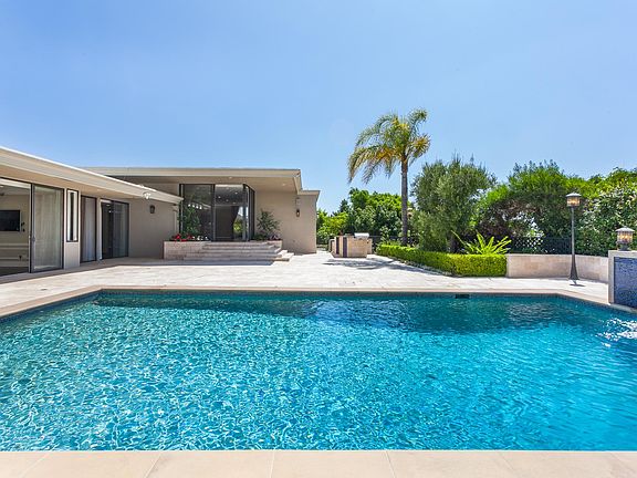 Gated one-story private oasis with resort like pool & spa on nearly half an acre of land. This private estate features 5 bedrooms & 6 baths and was constructed with the finest materials, is nestled on one of the most desirable streets in Trousdale. The homes formal entry welcomes you to a generous and bright entertaining space with floor to ceiling windows and skylight for extra sunlight. The Master bedroom features a private patio, dual bathrooms and multiple walk-in closets. The chef's kitchen is appointed with high-end appliances, a large center island and connects to an indoor/outdoor dining area. All bedrooms are en-suite, with generous closets and large glass sliding doors to allow for natural light and pool access. Other features include pool house and a 2- car garage and expansive motor court with parking for 6 additional cars.
