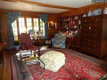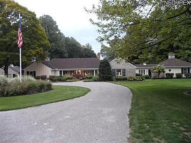 Pepperidge Hill is perched on 5 acre secluded setting w/wooded & sunset views! This romantic one story home offers carefree living w/ideal floor plan to entertain! House has been updated yet retains character of original style. Wormy Chestnut panelled living, dining, & family rooms! Hardwood floors throughout. 6 fireplaces. Family room and dining room open to stone terrace w/valley view. Attached cottage has 2 bedrooms, kitchenette, full bath & 2 fireplaces. Wonderful pool w/patio is great for entertaining. Updated country kitchen features granite. Stainless steel appliances. Lower level has recreation room w/fireplace & exercise room. Beautiful gardens & trees. Additional features are 4 car garage, security system, irrigation system, sound system & more!! Feels like Napa Valley here in Ohio!!