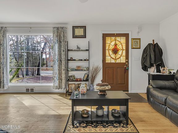 Comfy cape...in centrally located Forge Pond area...Newer roof..Newer gas heat and central A/C..Large corner property with U shaped driveway...parking 10 cars .Updated kitchen with garden window... hardwood floors...thermal windows...woodburning fireplace....full bsmt with tons of storage...3 bedrooms upstairs and a bath ...could be 2 bedroom inlaw suite downstairs....spacious, fenced back yard with shorage shed and screen house..