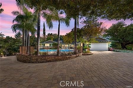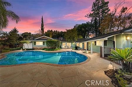 ONE OF A KIND! STUNNING CUSTOM-BUILT HOME with POOL-TENNIS & PICKLEBALL COURT Turnkey, single story located in Southeast Redlands. POOL HOME on nearly an acre. PRIVACY is all yours on TOP OF THE HILL. You will LOVE the LUSCIOUS LANDSCAPING and gorgeous paver driveway that wraps up to a large parking area with a two-car garage, surrounded by mature trees (some fruit). +100 year old Carob Tree with lanterns for romantic evenings outdoors. Magnificent views with a tennis & pickle ball court that completes the luxurious feel of this quiet and secluded home which is less than ten minutes from downtown Redlands and I-10. Custom floor plan has it all. Formal living room with vaulted ceilings, a family room with sliders open directly to the pool and leads straight into a spacious kitchen with natural light from a large garden window, and Formal dining room. As you would expect, the large primary suite includes a sliding glass door to the outdoor back patio. The other three bedrooms are perfectly located on the other side of the house, with two full baths. Redlands schools have high ratings. Note the pebble-tec pool has a light green color to give it a natural lagoon effect. Pool water is clean. Pool equipment works fine.
