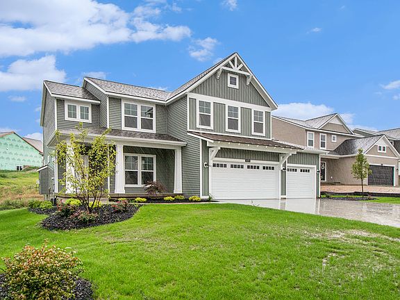 Welcome to this MOVE-IN READY home in the sought-after Walnut Ridge Community by Eastbrook Homes, located next to Byron Center High School. The main floor features 9-foot ceilings, a designer kitchen with hard surface countertops, and an open living area with a cozy 36-inch gas log fireplace. A flex room offers space for a home office or den, and durable vinyl plank flooring spans the entryway, kitchen, and dining area.
