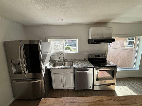 This recently remodeled 3-bedroom 1.5 Bath home, features brand new appliances with a large island, hard wood floors throughout, a pellet stove along with wall heaters, washer and dryer hookups, an ADA accessible bedroom. Outside has a bricked driveway for 1 car, fenced in front yard for a smaller animal, and a back yard with a storage shed. Rent $1900 Deposit $1900. Water, and sewer included. Smaller to medium Pets negotiable. *Available now*