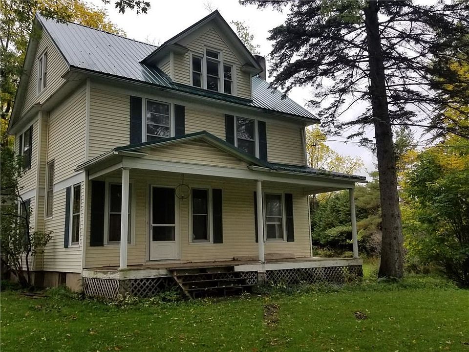 Are you looking for a LARGE home with Character, including beautiful original woodwork in the desirable Honeoye Falls School District, Well look no more... This home is priced to sell and listed well under assessed value.. Beautiful hardwood floors throughout the home, with 9.5 ft ceilings. Snuggle by the River Stone gas fireplace this winter season. Front and back interior stairs leading to 3 large bedrooms and extra bonus room for working out, computer room, nursery? Full bath on 1st and 2nd floor. Formal dining room. Metal roof is 6 years old. This home is on public water, but also has a well to water your garden or wash your car. LARGE detached 4 car garage with electric, water and a wood stove. One Year Home Warranty Included!