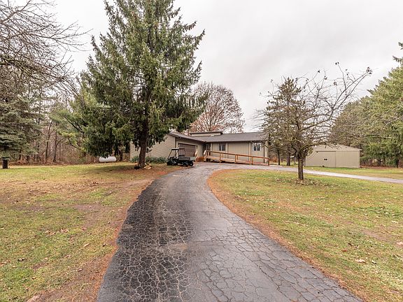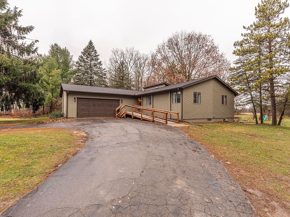 OPEN HOUSE CANCELLED! Experience the best of both worlds in this conveniently located, hard to find ranch home! Just five minutes from downtown Saline, this home sits on 1.77 private acres on a quiet street in a country-like setting, surrounded by woods for an ''up north'' feel right here in Milan. Enter into the tiled foyer that opens to a large great room with soaring vaulted ceiling, luxury vinyl plank flooring, a gorgeous bay window, and double doors that lead to your deck and outdoor living space. The spacious kitchen has wood cabinets, granite countertops and stainless steel appliances. The primary bedroom has a stunning en suite bathroom, featuring curbless, tiled shower. Two more spacious light-filled bedrooms and an updated full bathroom make this home perfect for those seeking story living. In the lower level, you'll find a bright recreation room with a walk up exit for easy access to the back yard. Two more rooms with egress windows that have multiple uses; picture an airy office, home gym, or studio in your lower level. Store all of your toys or tools in the large pole barn. 500 square feet of the pole barn have been converted to a living space with small bathroom for those extended stay guests. With lower York Township taxes and award winning Saline schools, don't miss your chance to make this spectacular home your own.