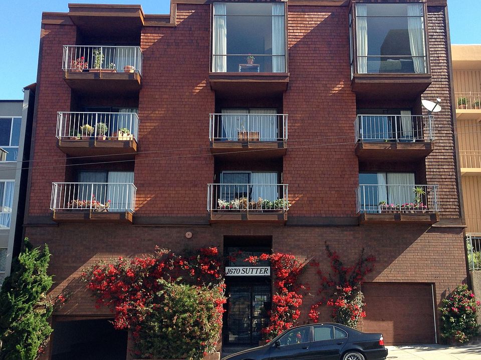 Bright and sunny top floor studio, high ceiling, floor-to-ceiling glass window, new drapes, Large remodeled kitchen with granite countertops, bamboo floor, maple cabinets, microwave and dishwasher. Comes with a Murphy bed and cabinets. Lots of closet space. New carpet throughout. Garage available for $150 per month. Balcony overlooking Sutter Street. Close to restaurants, shops, movies, and Jazz venues on Fillmore, Geary, Van Ness theaters. Must have good credit and respect good neighbors. Silicon Valley shuttles nearby. No pets, no smoking. The owner pays for water, and garbage. The owner pays for water and garbage.