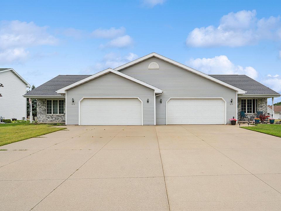 Great opportunity for investor or owner occupy this ranch duplex! 3BR/2Ba on right side and 2BR/2BA on left side. Each unit has 2 bedrooms and 2 full bath on the main. Living room with WB fireplace and vaulted Ceiling. Kitchen with abundance of cabinets, full appliance package and dining area overlooking patio door and concrete patio. Full bathroom on main includes laundry with W/D hookups. Primary bedroom with full bath. Attached 2 car garages on each side. Right side has 3rd bedroom finished in LL. Fully rented but on M2M leases. Tenants maintain snow and lawn and pay all utilities.
