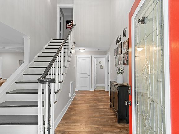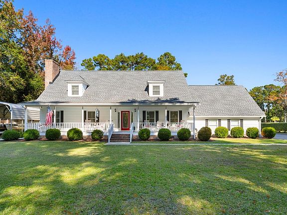 Welcome to your private oasis! This magnificent property sits on a full acre of land with a separate In-law suite, a large front porch to relax on, an added Carport large enough for a boat or RV to easily park under, a small parking lot, and fencing bordering a large in-ground pool. The meticulously maintained 3-bedroom, 3.5-bathroom main house features a recently replaced roof and fresh coat of exterior paint (2023) an attached two-car garage and upgrades that truly set it apart. A guest house/in-law suite is located to the back right of the property allowing privacy. The guest house includes an additional two-car garage. The Second floor offers a 1-bedroom, 1-full-bath living space, and kitchen. Step inside The Main house and discover an incredible primary suite on the first floor with a built-in fireplace, a jetted tub, a stand-up tile shower with dual shower heads, an in-suite laundry room, and direct access to the oversized two-car garage. Upon entry, notice the brick gas-burning fireplace surrounded by built-in storage leading to the formal dining area, open kitchen, and another room for entertaining. The main level features a full bathroom with a walk-in tile shower and a convenient half bath for guests. Upstairs, you'll find two oversized bedrooms with exceptional closet space and a full bathroom. The kitchen has stainless steel appliances, gleaming quartz countertops, updated light fixtures, and an oversized island. The secondary living space beyond the kitchen offers an unobstructed view of the 20 by 40 ft in ground salt water pool. Step outside through the sliding door or secondary entryway to immerse yourself in the oversized saltwater pool, or relax on the covered porch just off the sunroom. The property features a fully landscaped and fenced yard with a workshop shed, a charming pergola, and additional yard space. Elegant plantation shutters, a propane tank, and a termite bond with terminex pest control and dehumidifiers in the encapsulated crawlspace for the foundation, ensuring peace of mind. Tray ceilings, columns with added storage, and updated ceiling fans enhance the property's appeal. Don't miss this exceptional gem!