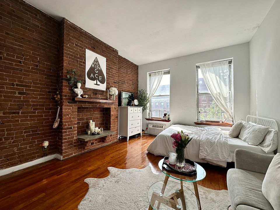 Large and sunny studio in the heart of Upper East Side! Excellent layout of the living area will allow you to furnish with ease. Exposed brick with decorative fireplace and can fit a large queen size bed, while still having enough space to create a lounging area. Separate kitchen ample countertop space, and full appliances. Bathroom with a full bathtub!