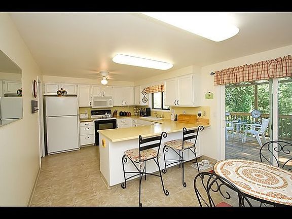 Enter through the double, windowed front doors to a light-filled entry, up to the south-facing living with gas fireplace. Dining room leads to eat-in kitchen with deck slider. 3br/2bath on this level. Large family room/Lopi wood stove/bath/laundry on lower level. Walk out from the upper deck or lower deck to manicured, fully-fenced back yard. Extra wide stairs down from deck. O/sized double garage, possible 4th bedroom. Ready to go.