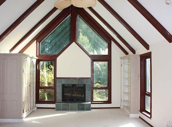 Architecturally interesting home on two acres with good privacy.