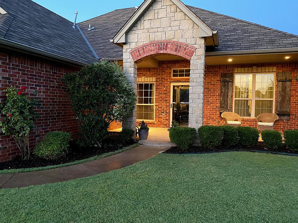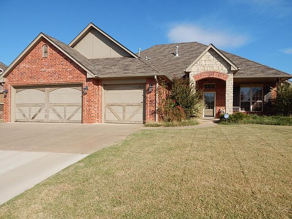 Wonderful home in Edmond. 3 bed plus office with upgraded countertops, cabinets, wood floor in living room, vaulted ceilings, fans in rooms, three car garage with storm shelter and gated community.