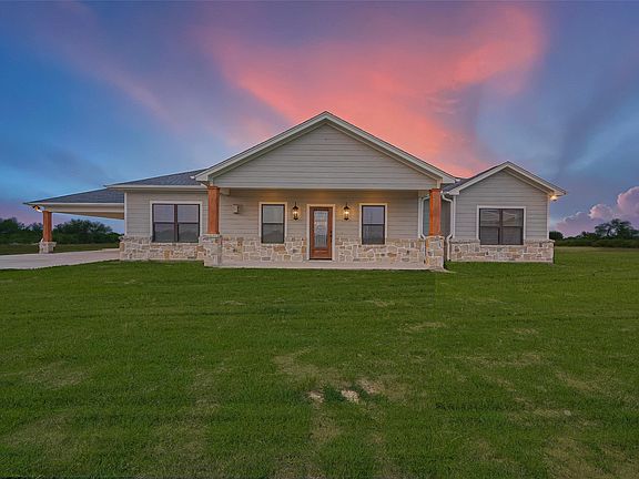 Stunning custom-built home by AG Custom Homes set on 15.85 acres, w/12 acres currently under AG Exemption! This 3-bed/2.5-bath home includes office, game room, 10-ft ceilings, open-concept kitchen, living& dining area, all w/concrete floors. Kitchen w/farmhouse-style sink, SS appliances& 42" cabinets, granite counters& stylish finishes. Laundry room w/water line for refrigerator& both electric/propane dryer hookups. Includes tankless water heater, 8 security cameras & cinder block safe room w/vault door & fireproof rating. Relax in pool, hot tub, outdoor shower & exterior half bath. 60x40 metal shop features epoxy floors, LED lighting, 10-ft porch, 16-ft sidewalls, 20-ft lean-to, 12x12roll-up door, 200-amp service, 15kW SOLAR setup, plumbed for sink& 1/2 bath, 2 RV septic drops, water/internet to shop. Insulated well house on slab has LED lighting, 20-amp power& 4” well. Aquasana whole-home water filter & salt-free softener incl. Aerated pond with pier posts & water line.