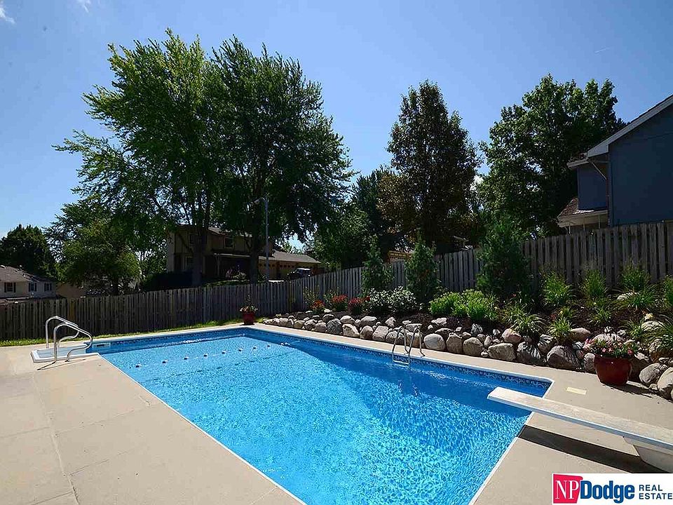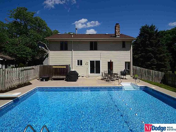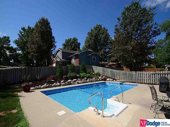 Updated Millard North two story. Beautiful in-ground swimming pool with plenty of hot steamy days to come. Fresh paint and new carpet throughout. Kitchen refreshed and shines like new. Top of the line Carrier HVAC system in last 5 years. Floor plan has great flow and features 2 story entry, six panel doors, large bedrooms, and his & her vanity areas/closets in master bedroom; side load garage. Basement is exceptional & includes 3/4 bath and possibilities for fifth bedroom/office. Park like setting front & back. Playground, shopping, W Dodge Expressway, hospital nearby.