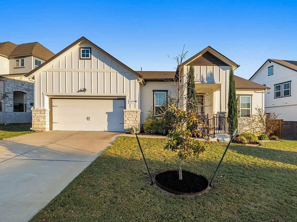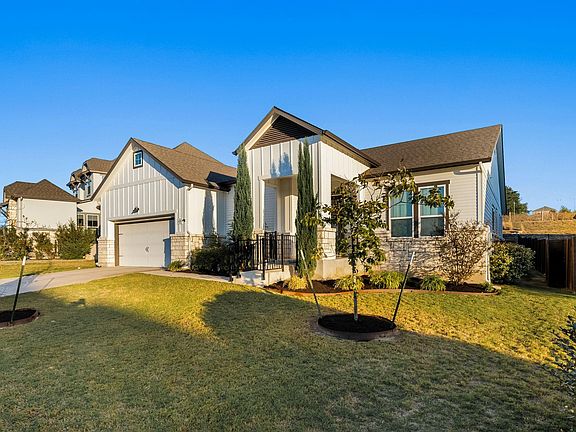Stunning single story 3 bed, 2.5 bath residence in the sought after neighborhood of Provence . The open concept floor plan flows from the chef's kitchen, complete with double ovens, gas cooktop, walk-in pantry, and expansive island, to the light filled living and dining areas. Elegant wood flooring anchors the main living areas with warmth and elegance. Spacious primary suite features an oversized bath with dual vanities, walk in shower, and peaceful vineyard views. Versatile home office easily adapts as a bonus room or playroom. The 3 car garage and oversized lot with no rear neighbors add privacy and the benefit of wide open vineyard views. Enjoy outdoor living on the extended covered patio with stained concrete overlooking a fully fenced backyard with professional landscaping. Community amenities include resort style pool, clubhouse, and playground, all within walking distance. Lake Travis ISD! Minutes to Bee Cave & Dripping Springs shopping, dining, and top rated schools. Refrigerator not included. Pets considered with owner approval (breed/size restrictions apply). Schedule your private showing today.