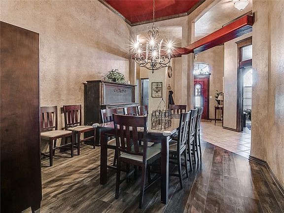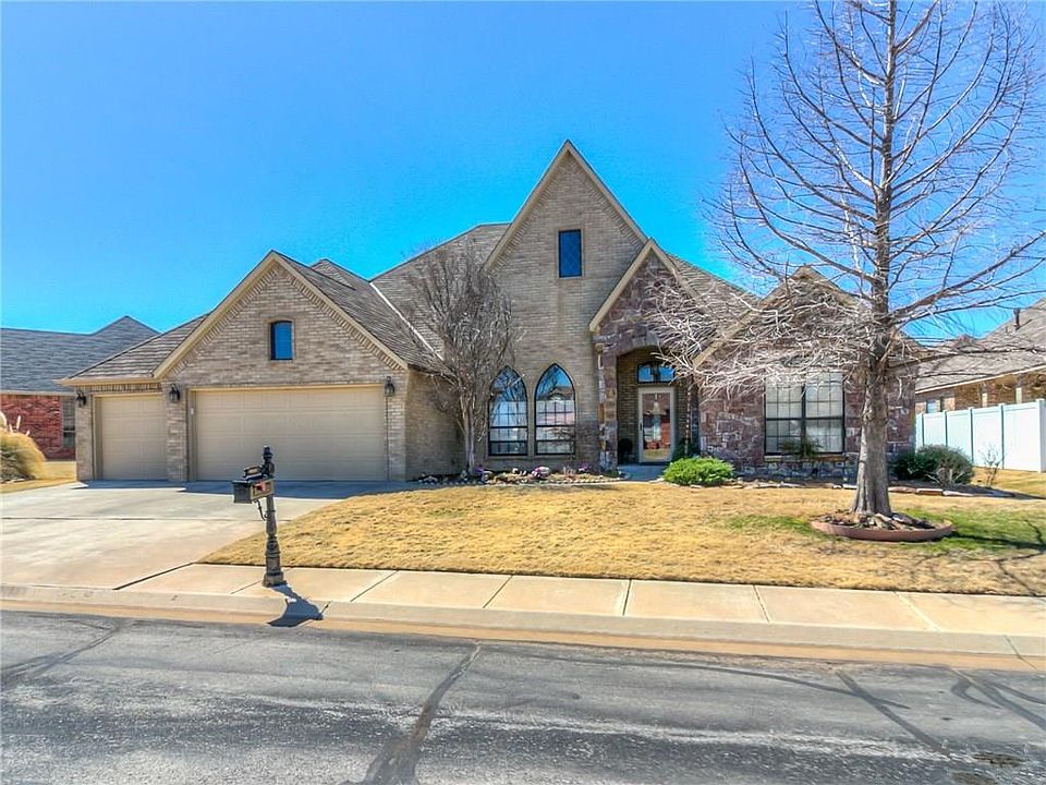 Stunning executive home in the gated and highly coveted Fenwick Garden Village addition! This home boasts size, comfort and elegance! You will be welcomed with a grand front elevation with incredible landscaping. Entry way opens to formal dining room, a second living area that could be a large study/library and leads into the main open concept entertainment/living area. Living room has a fireplace, tile flooring and high ceilings. Kitchen offers high end features including stainless appliances, granite countertops, brick accent wall with built in oven & microwave, a large island & breakfast bar. This home has a true mother in law plan with a bedroom with full bath on one side and the other guest beds on the other. Study listed is a good sized "pocket office". Large covered patio & open wood deck too! Community offers pool and club house and is located just north of Quail Springs Shopping, dining, entertainment, and easy access to the turnpike! Welcome Home!