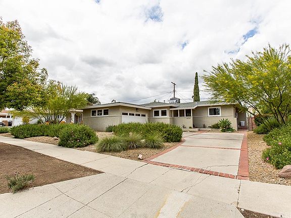 Bright immaculate home located on quiet street in prestigious Granada Hills community. This beautifully upgraded home features a large driveway for parking, green desert landscaping, colorful flowers, modern accents & two-car attached garage. Enter into a formal living room with Mid-Century modern flair, hardwood floors, dual pane windows & dual pane sliding glass door to yard. Formal dining area flows with the living room. The family room or den has new carpets, custom stone fireplace & access to back yard. The Kitchen includes new light Fixtures, solid wood cabinets, included stainless fridge, Stainless dishwasher, & stainless oven stove-top. Off the kitchen you'll find the powder room & laundry room. The master bedroom has new dimmer lighting, dual door closet, & three large windows for tons of natural lighting. The hall bath has a pedestal sink, custom subway tile bath & shower stall. The two other bedrooms have dimmer lighting plenty of closet space with new carpets & paint. The Beautifully landscaped yard has a concrete sitting area, colorful flowers in the retaining wall block planters, new sod & sprinkler system, citrus trees, & children's fort/ play area. Other benefits include copper plumbing, 8 year old roof & 8 year old A/C heating system.