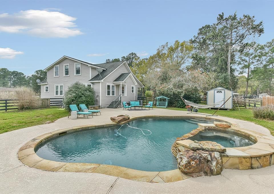 Welcome to 16707 Bobcat Trail Cypress, TX 77429. This 3 bedroom 3 bathroom home sits on a large unrestricted 2 acre lot. Home features large covered porch with bead board ceiling. This home features the original oak floors throughout the main first floor living areas! Formal living room just off the family room. Large formal dining room. Large custom kitchen with granite countertops, stainless steel appliances, wood cabinetry and tile backsplash. Downstairs master bedroom with en suite bathroom. Spacious flex room upstairs perfect for a game room or home office. Grand master suite with sitting area, maple floors and en suite bathroom. Master bathroom features ornate vanity and large whirlpool tub! Large fenced backyard with patio, inground gunite pool and fire pit. Workshop with two HVAC units and Barn with stables each 46x24ft. 22 new double pane windows throughout first floor! Make your appointment today! *Update* Owners just added a new 275ft. well!