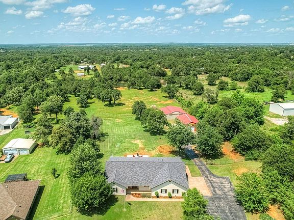 Welcome to your dream property in Choctaw school district! Nestled on just under 5 acres of scenic land, this beautifully maintained home offers the perfect blend of comfort, space, and functionality that includes a 30x40 shop with insulated walls, a 40x40 barn and a large stocked pond with a walkout pathway to relax. With 2190 sq ft this home features 4 spacious bedrooms, two inviting living areas, and a dedicated home office, this property is ideal for both everyday living and entertaining. The open-concept kitchen flows seamlessly into the main living space, creating a warm and welcoming atmosphere. The second living area offers added flexibility—perfect as a game room, media room, or additional family lounge. Step outside and explore everything this property has to offer. The barn is ready for your livestock, storage needs, or hobby projects, while the fully equipped shop provides ample space for tools, equipment, or your next big idea. Whether you’re looking for a quiet country retreat or a property with room to grow, this one-of-a-kind listing delivers space, versatility, and endless potential—all just a short drive to Tinker and downtown OKC! This home is also wheelchair accessible with all doors being 36” wide! Did I mention NO HOA? Don’t miss your chance to call this one yours!