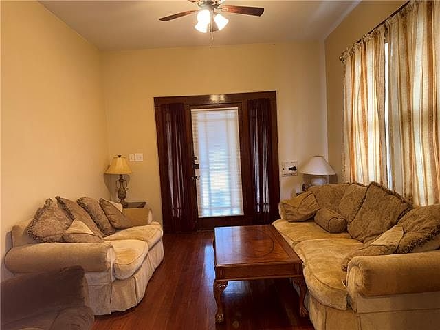 Fully furnished New Orleans style shotgun including 1 queen bed, dining table, living room sofa, refrigerator, gas range, washer and dryer. Home has 2 bedrooms, 1 bathroom with 9 foot ceilings, ceiling fans throughout, and original hardwood floors. No sign on property. No Pets allowed.