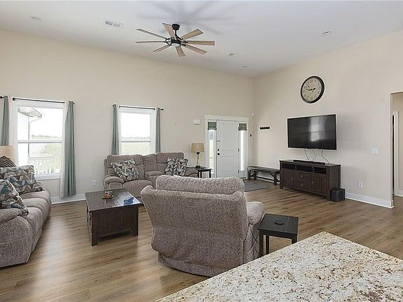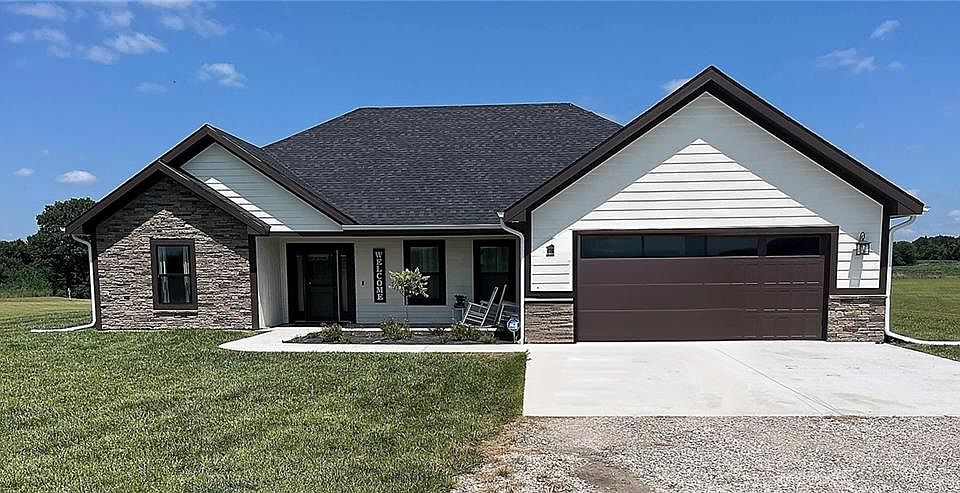 Like new inside and out! Enter this nearly new home and step into an expansive open living area with soaring 12' ceilings. The kitchen features stainless steel appliances, granite countertops, two pantry spaces and a large island. 9' ceilings are throughout the rest of the home. The spacious primary suite includes a long double vanity area, large shower and generous walk-in closet. Two more substantial-sized bedrooms share a hall bath. An oversized two-car garage provides additional storage for vehicles and more. This great ranch home is situated on 4 acres on the outskirts of Kingsville--just minutes away from Holden and only 15 minutes to Pleasant Hill. Enjoy modern living with views of fields from your front porch and back patio. This is a great opportunity to live in a new, contemporary home while enjoying the peacefulness of country living. This is a "must see" property!