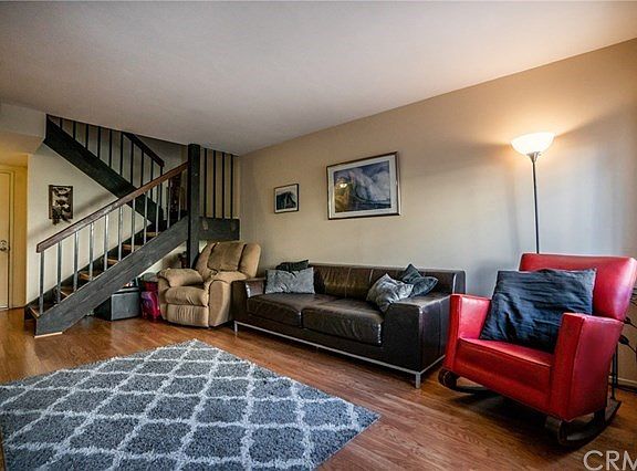 Stunning townhouse-style two-story spacious condominium with three bedrooms and 2 1/2 bathrooms and direct access two-car garage in a lush green complex with a sparkling blue pool. There's a private front patio with room for a BBQ and table and chairs and vaulted ceilings in the main bedroom with en-suite bathroom. Upgrades to the complex include new exterior paint, new asphalt throughout and new trash enclosures. The unit has scraped ceilings, new paint, new lighting, updated bathrooms with new vanities, new laminate flooring throughout the unit, large closets and tons of storage. The common grounds include a pool, clubhouse and outdoor eating area. What an amazing opportunity to own this beautiful townhome!