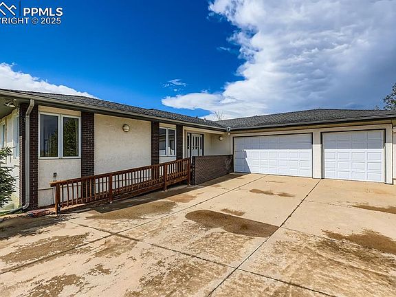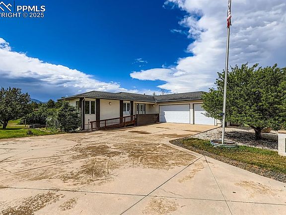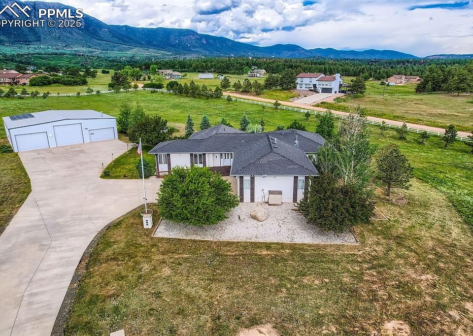 very rare opportunity to own custom, approximately 4000 Sq. Ft. finished ranch with 3600 Sq. ft. shop, on 5 acres with stunning view of Mt. Herman in Pine Hills. Close in yet secluded property with 4 bedrooms, 3 baths, 3 car heated garage. Fully finished walk out basement with full kitchen, game room, media room ready to go to watch movies and sporting events. Walk outside to Pond with lots of shade trees. Main floor is very open with real hardwoods, large kitchen, master with fireplace and large 5 piece bath. Expansive Trex Deck with great views of Mt. Herman. When weather gets cooler you can still enjoy great views with enclosed patio area. All 5 acres are fulling fenced with newer white fencing. Shop is a dream for home business, wood worker, or owner with lots of toys. Metal building has 3600 square feet, heated, and 3 doors to come in and out. There is wheel chair access to the front door and garage if needed. Septic and leach field have been pumped and inspected for new buyer. !!!All this home needs is new owner to add their updates to make this their dream home. Property is zone RR5, well permit # 170335. Seller is an estate. Being sold STRICTLY AS IS. Great Schools in Lewis/Palmer 38 school district.